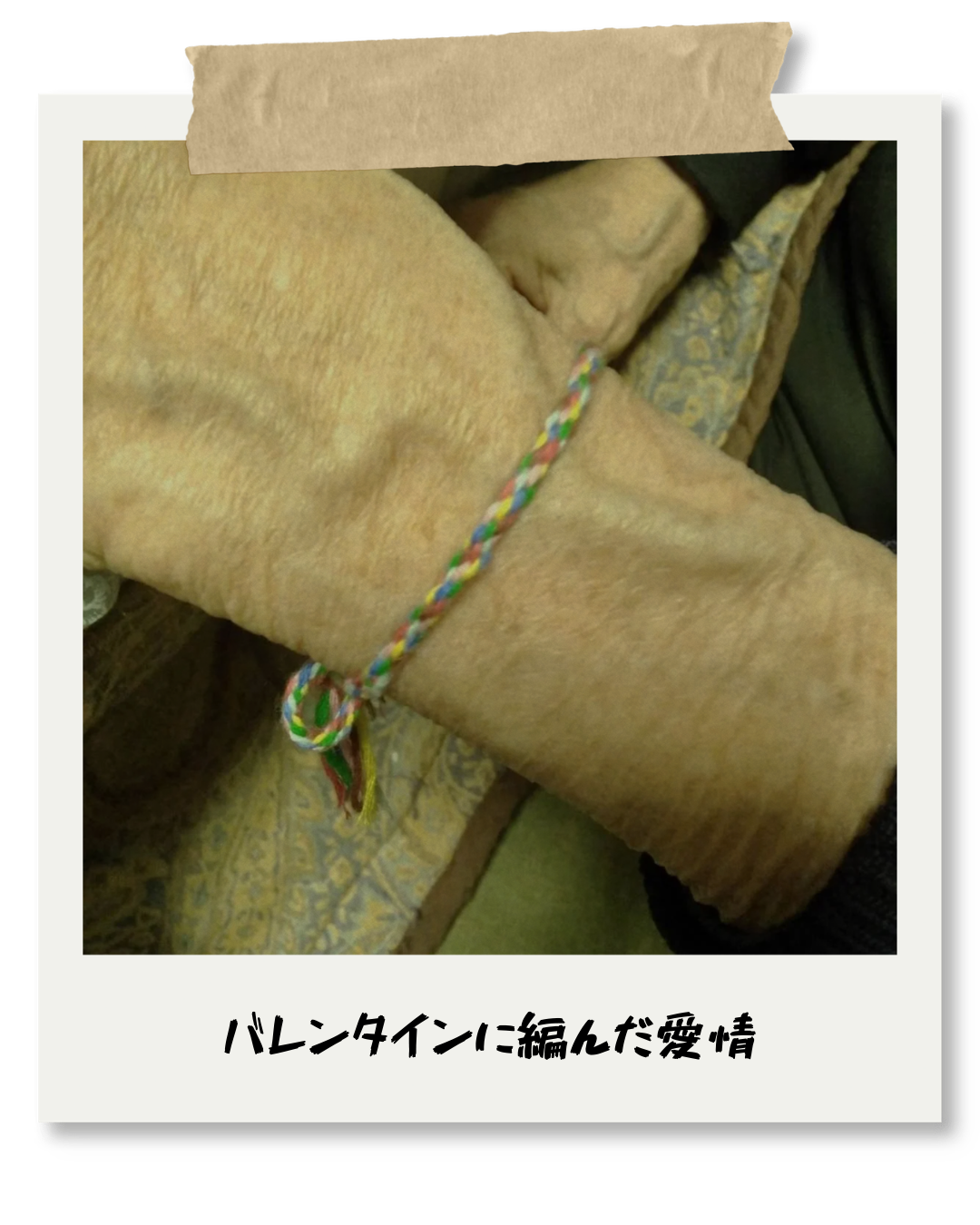 完成したミサンガを、ご主人へプレゼント。