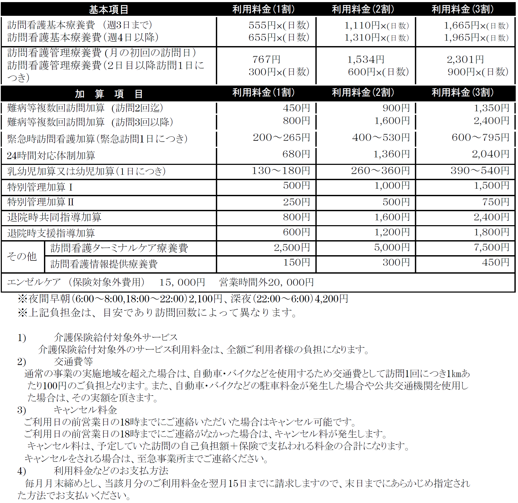 要介護状態と認定されたご利用者様に対し、訪問看護のサービスを提供し、居宅においてご利用者様がより自立した日常生活を営むことができるように、支援することを目的とします。